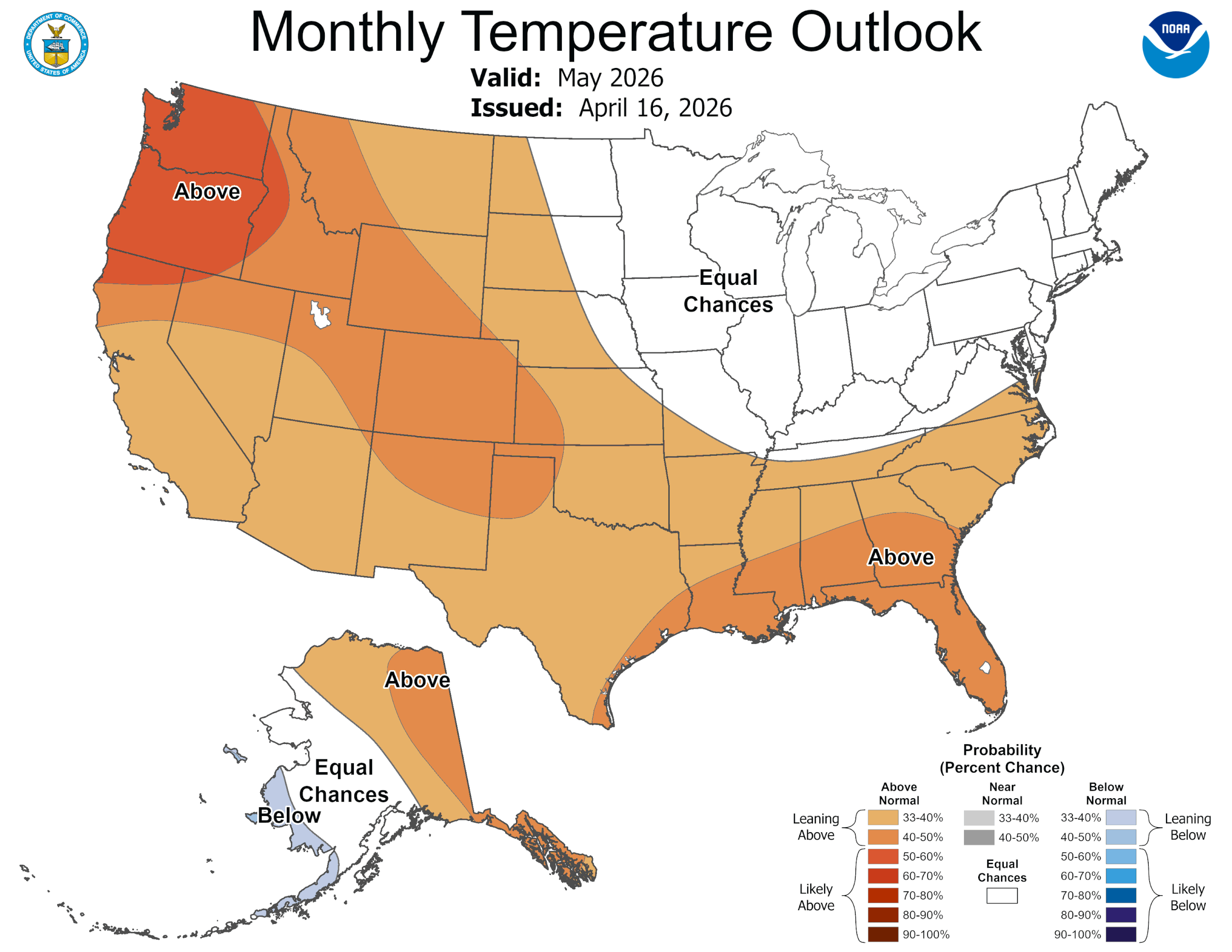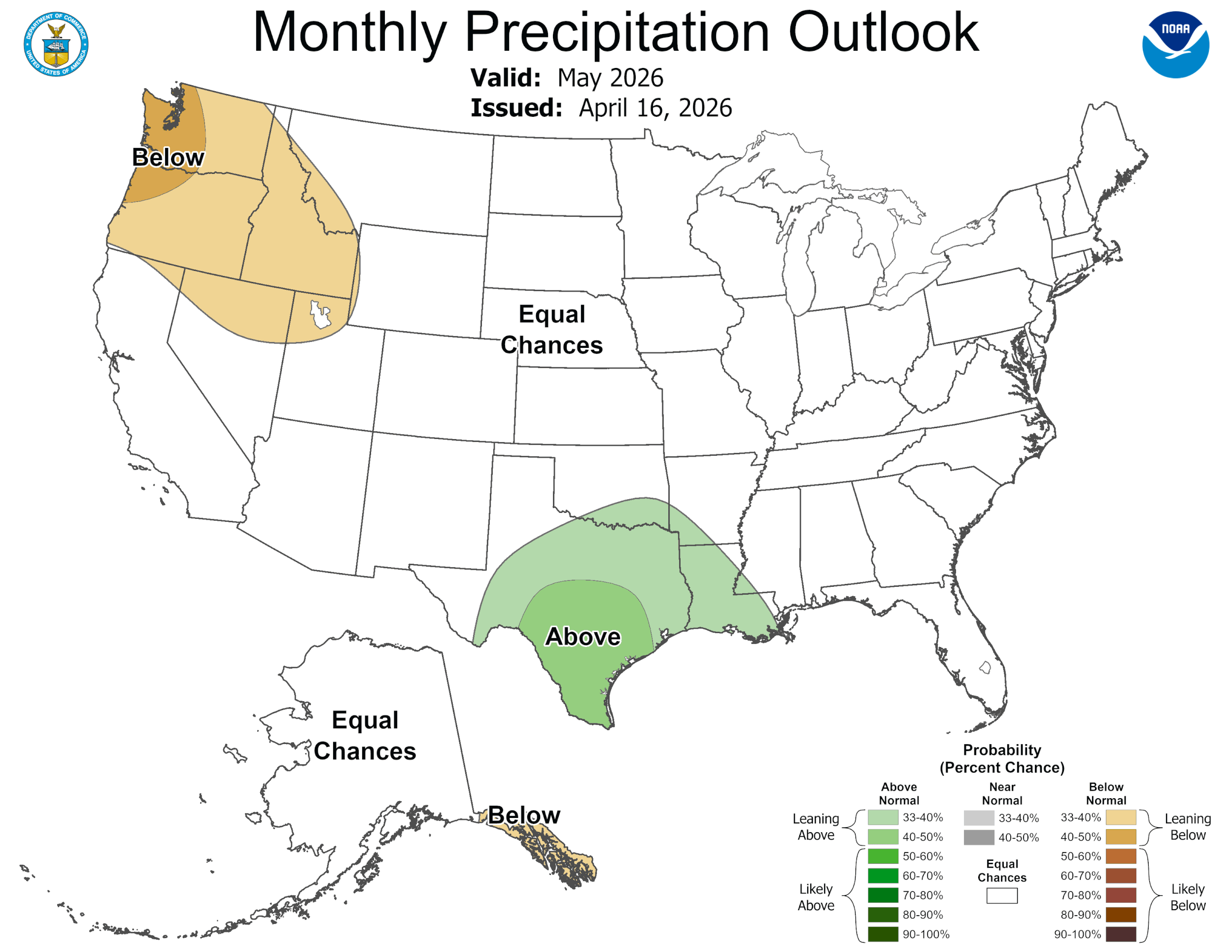 Another disturbance moves through on Wednesday before we dry up for a couple of days. The lates CPC May forecast is out and it is forecasting a potentially wet May!