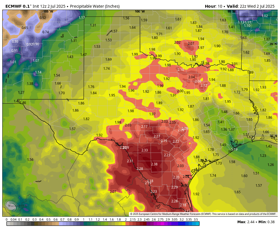2:30pm radar shows storms moving NW from the coastal plains to the border and northward into the Hill Country. The heavier rain totals this afternoon will fall north and along a HWY 90 line, with some locations possibly seeing 2-3 inches of rain! Since this is convective in nature, there will be a lot of haves and have nots…with some of you seeing very little rain and nearby areas seeing a lot.