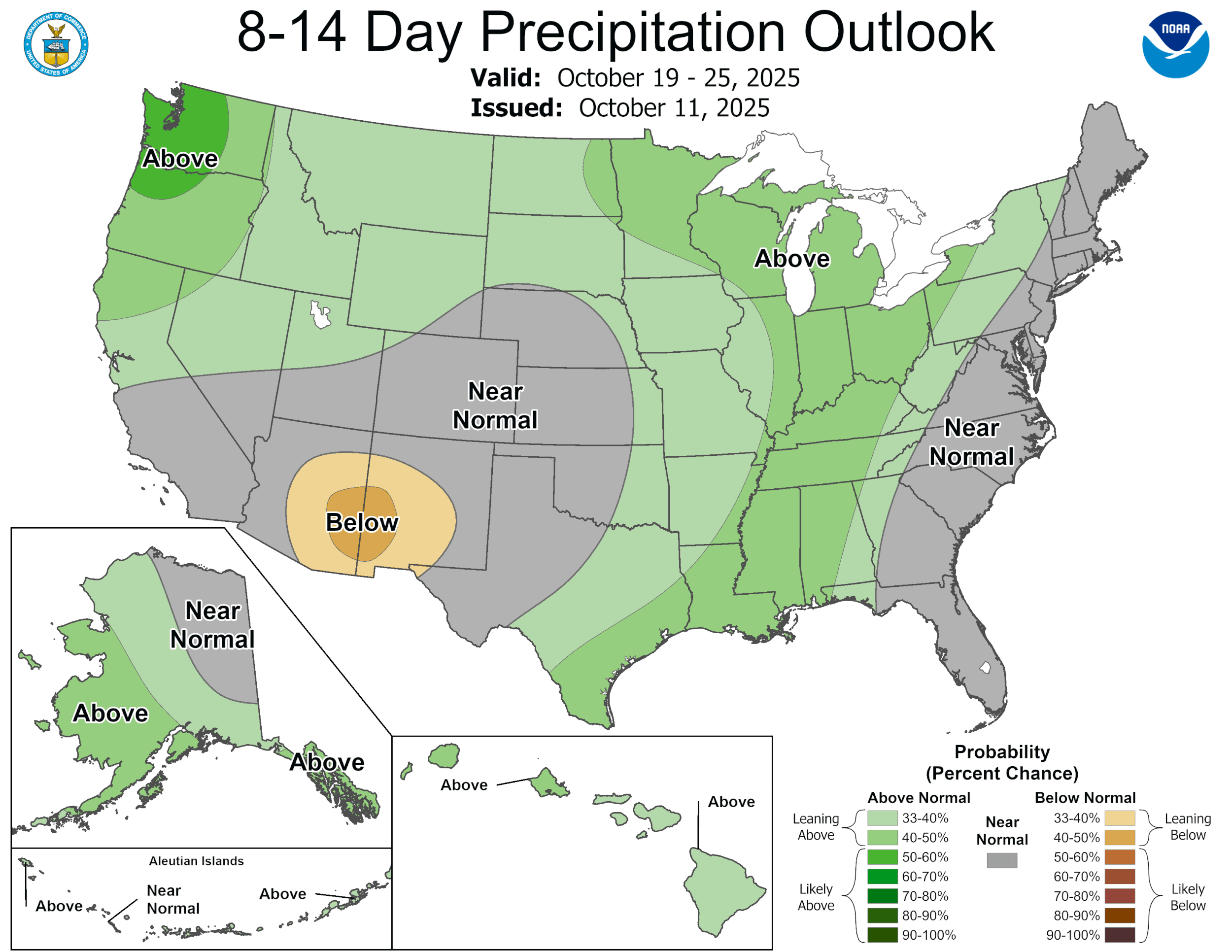 The latest 6-10 and 8-14day CPC outlooks are looking more bullish for rain in the future. Click on images to see them larger.