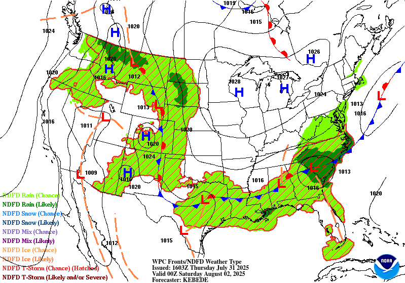 On Friday and Saturday, a stationary front to our NE and an inverted trough will give us a chance for some isolated storms.