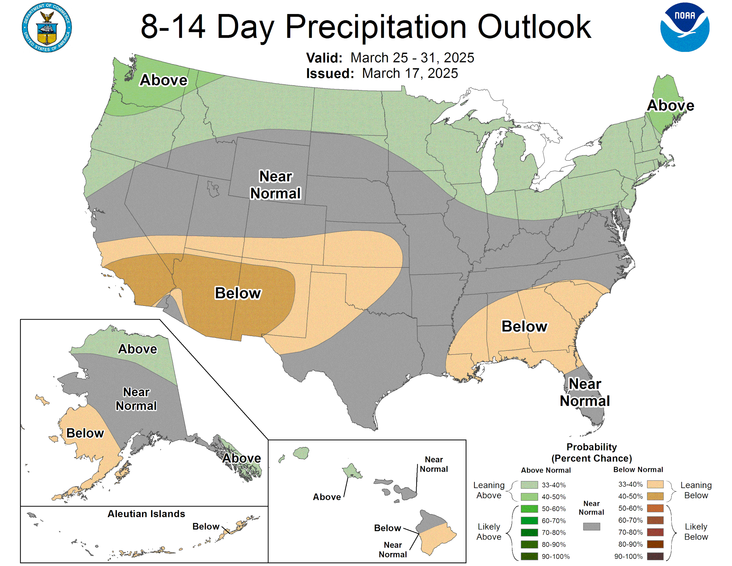 The latest CPC 8-14day forecast has us in the 50/50 odds for above or below normal rainfall.