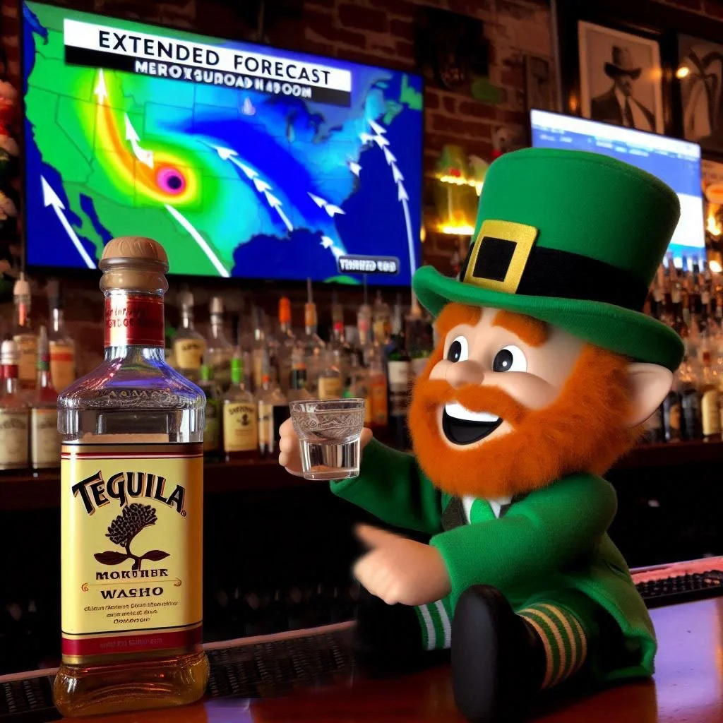 In honor of St. Patrick's Day, we've asked our resident Lucky Leprechaun to share the latest long-range forecasts, along with a grain of salt and a shot of Tequila this afternoon!