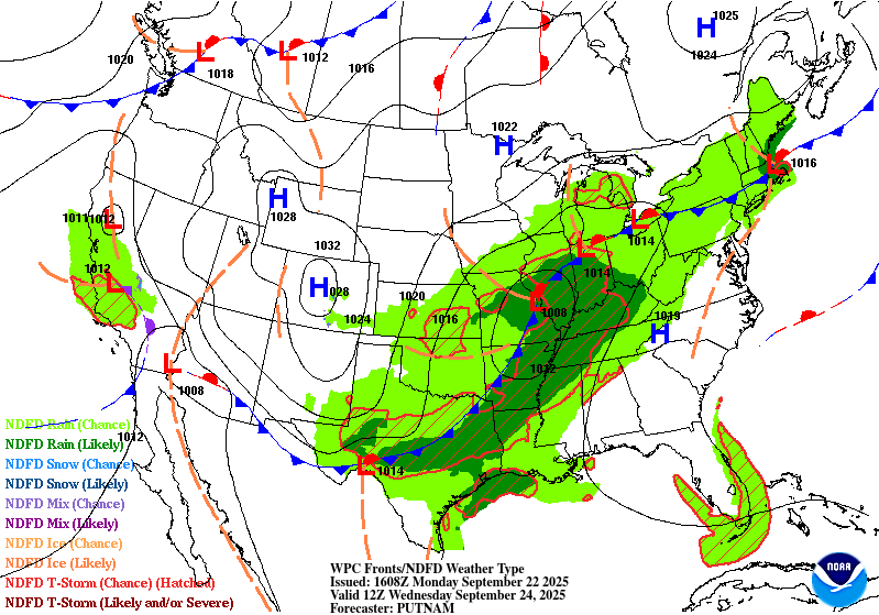 Welcome to the first day of fall. With heat indexes over 100 degrees for most of our area, it doesn’t exactly feel fallish! Tomorrow will be even warmer with may locations seeing actual temperatures of over 100 degrees. Fortunately, we will see some relief on Wednesday as a “not so hot” front arrives during the day, giving us all a decent chance for storms and less warm temps. We may even see some 60’s for morning lows by Thursday and Friday. The models have increased our potential rainfall totals a bit for Wednesday and Thursday with even a chance for severe thunderstorms…high wind will be the main threat. As is the case around here so often, there will be pockets of heavy rain for some and not so much for others.