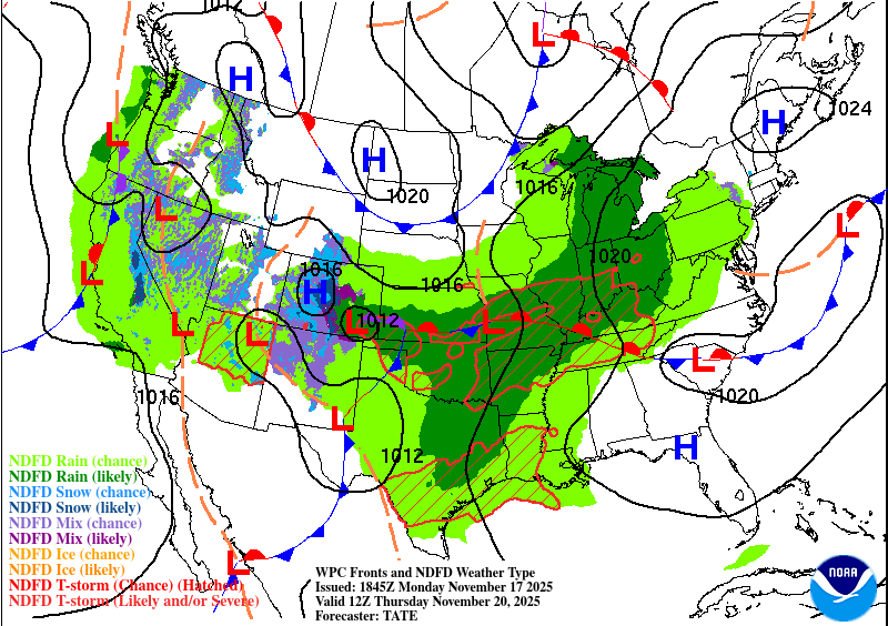 Still keeping my eye out for any arctic fronts…as of post time, the EURO has changed its mind about a polar vortex just after Thanksgiving, but the Canadian now thinks one is possible. Until I see a consensus I won’t start telling you guys to stock up on distilled water and toilet paper!