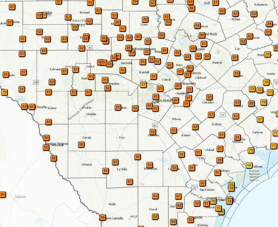 Yet another unseasonably warm day out there with most locations in the 80’s as of post time. For the record, the after high for this time of the year in the mid 60’s and average lows should be the mid 40’s. As of post time, still no signs of arctic air impacting us for the next two weeks.