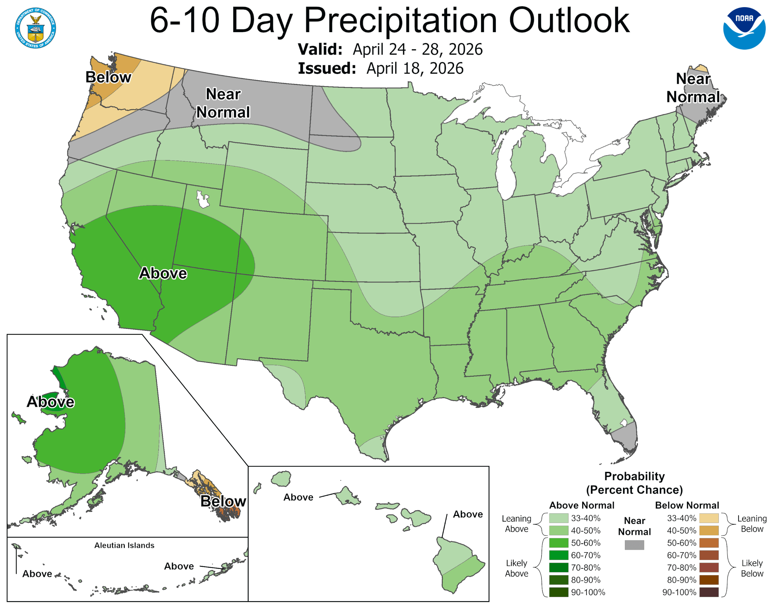 Long-range CPC outlooks continue to show better than 50/50 odds for above normal precipitation though the end of the month.