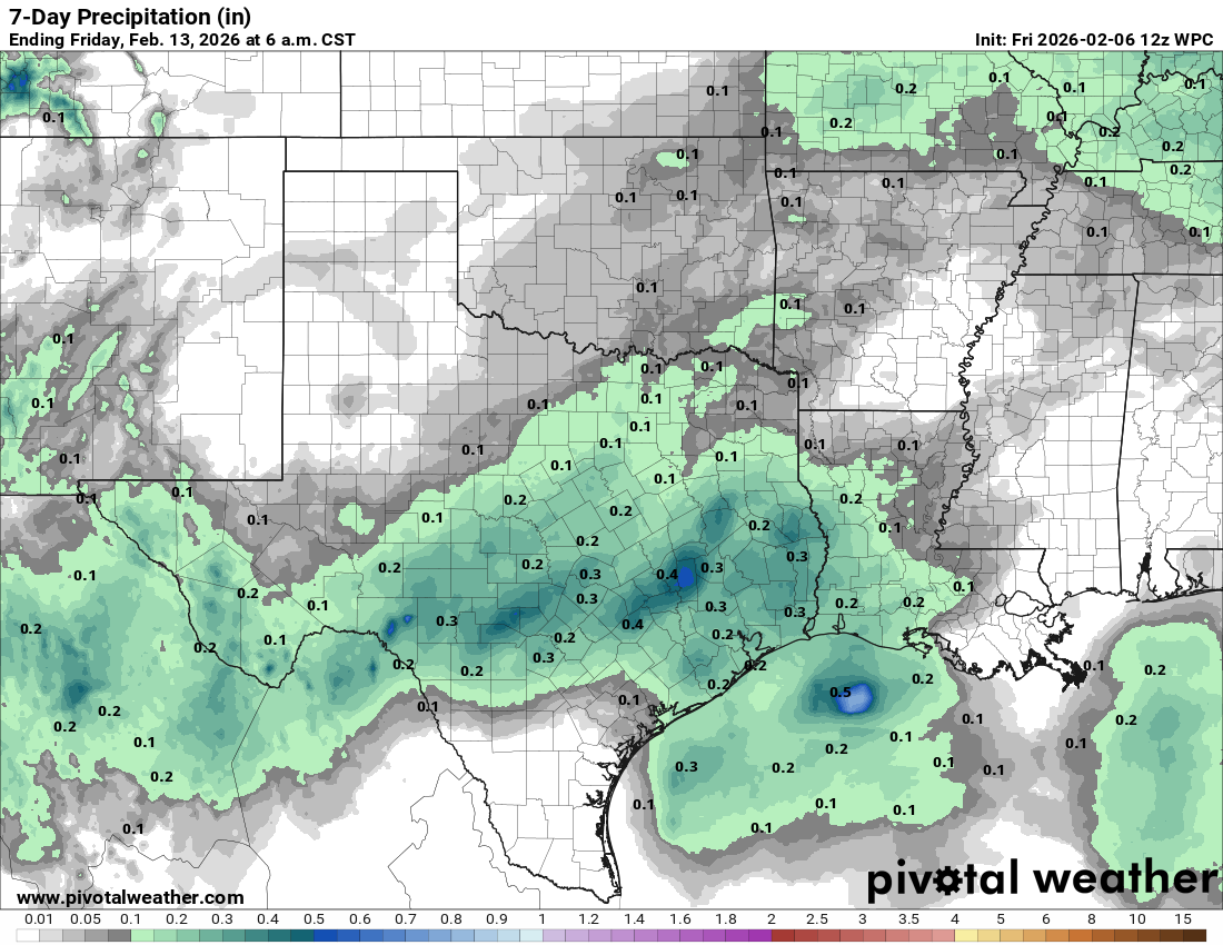 Our disturbance is still forecast to move into our area from Mexico on Monday and Tuesday, giving us a “chance” for some rain, but as of post time, whatever ends up falling will not even put a dent in our dry conditions. Still hoping that a pattern change sets up the second half of February, but as most of you say, “I’ll believe it when I see it!”.