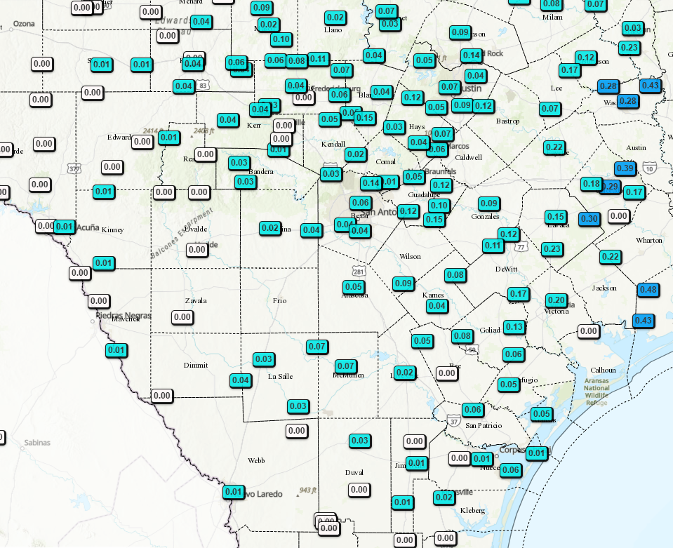 A few more of you picked up some drizzle and light rain overnight and early this morning…I have 48hr rainfall totals below. This will be our last cloudy day for awhile as high pressure will rule for at least a week, and likely longer. We warm up tomorrow under sunny skies as our winds shift into the SW ahead of a seasonal front that arrives on Sunday. Monday and Tuesday will give us lows in the 30’s-40’s and highs in the 60’s. Wednesday and beyond will give us 50’s at night and 70’s during the day. With no rain in sight in the short term, it will be a great stretch of weather for doing just about anything outside, although swimming may be a bit nippy!