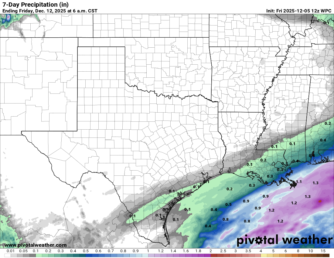 Long-range models are hinting of a wetter pattern moving in around the 20th and lasting through the end of the month. As of today I’m not seeing any arctic air in the next 10 days but at least one model is forecasting an arctic outbreak on Christmas Eve…that’s worth keeping an eye on!