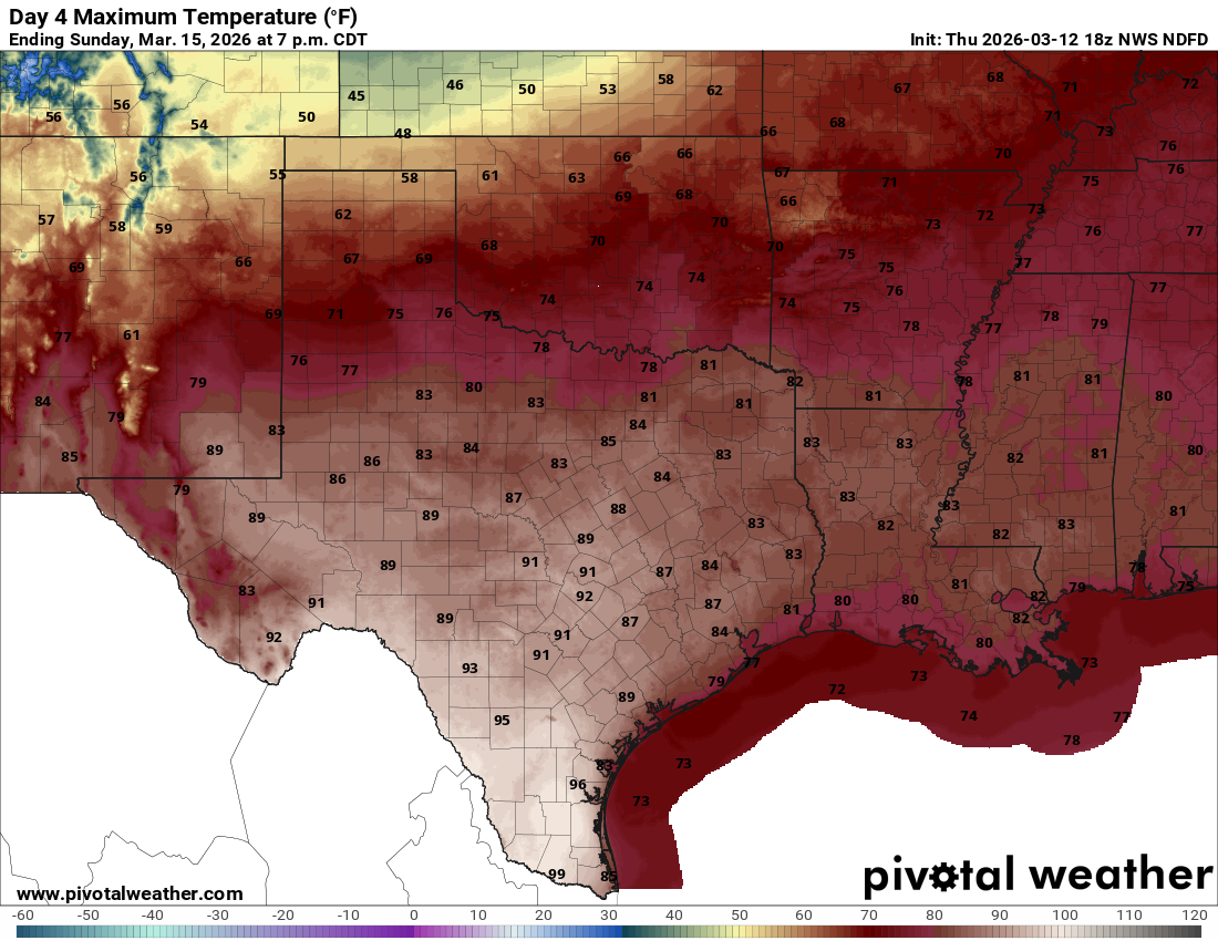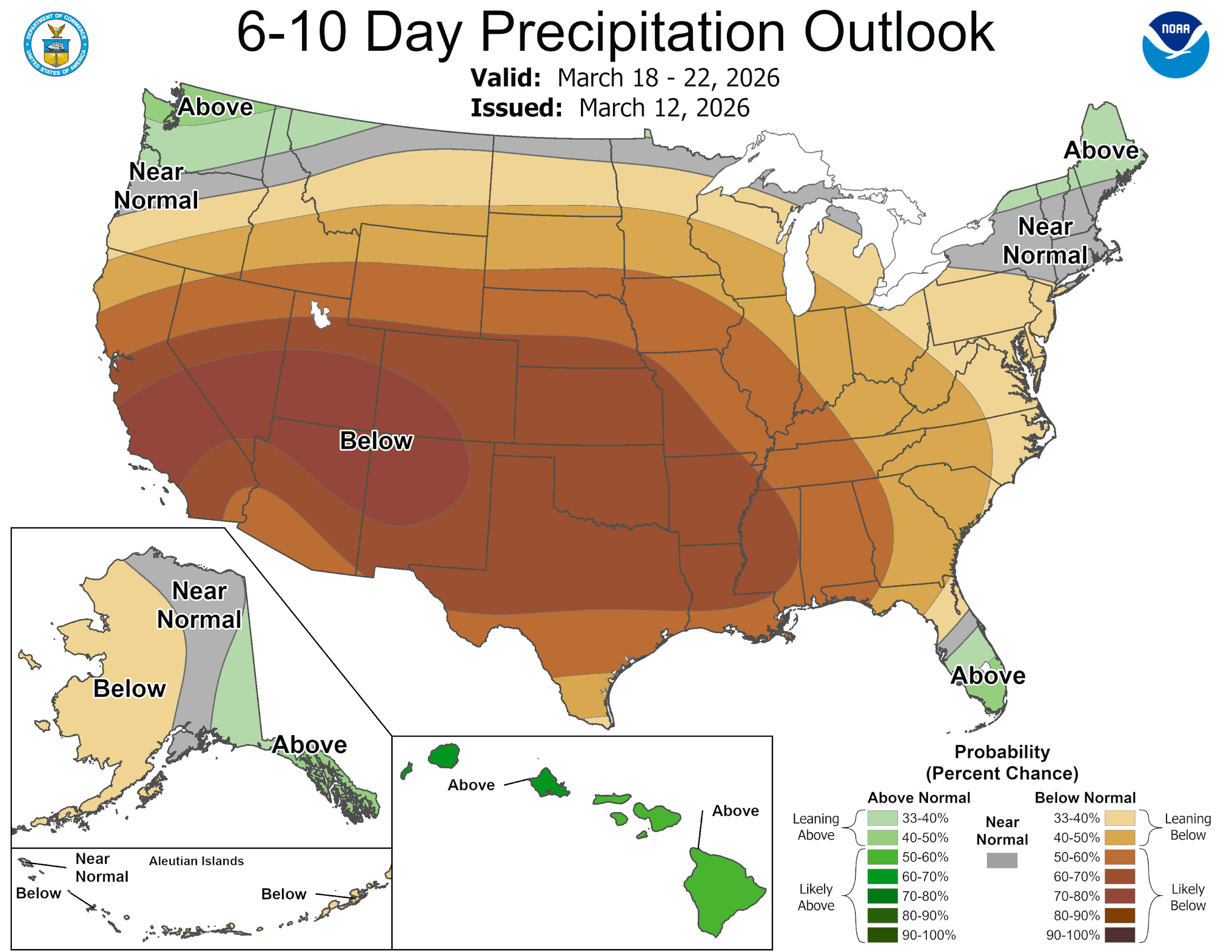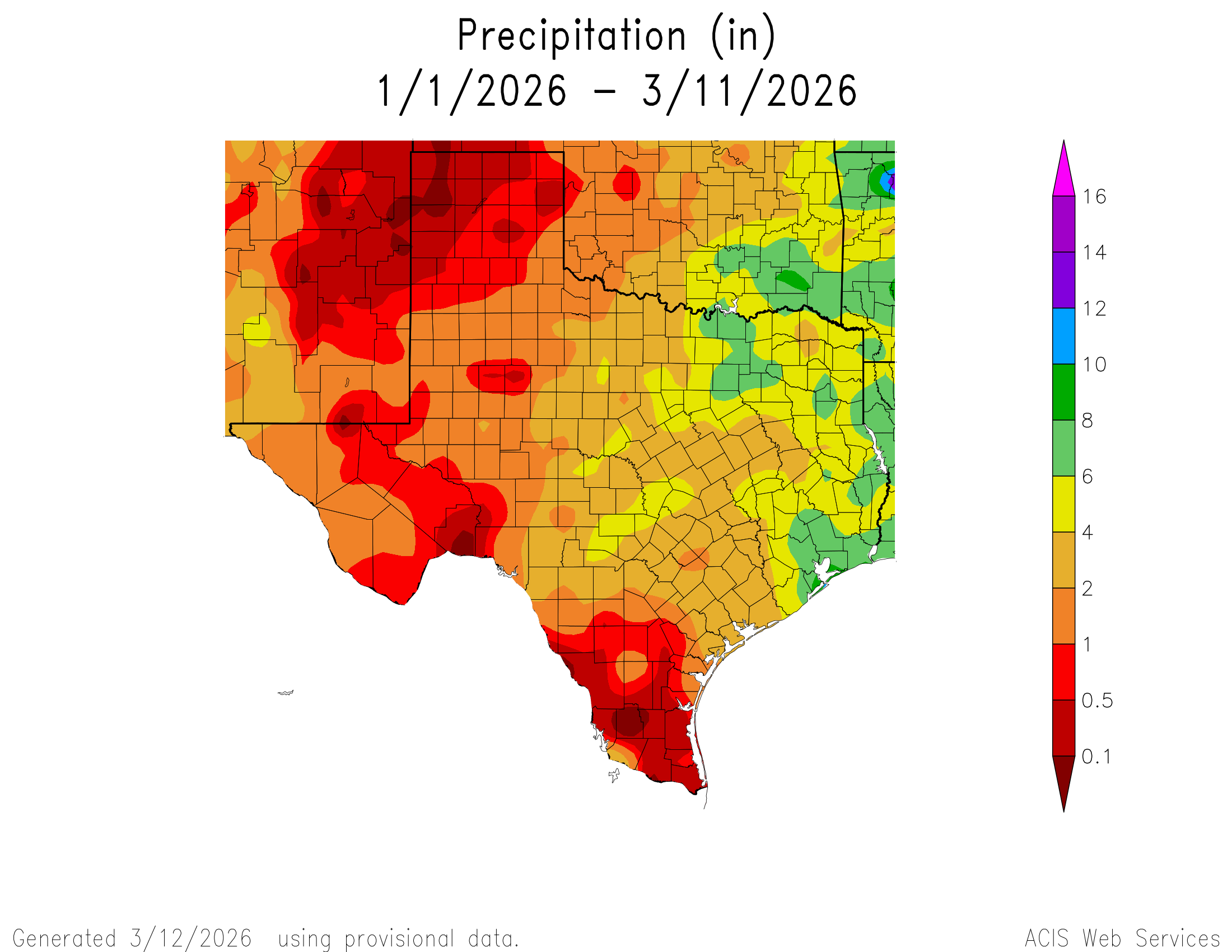 Below is the latest depressing drought update. About the only thing positive is that the drought has not expanded over the past 7 days and some locations along and north of HWY 90 have seen above normal rainfall for March so far. No rain in the forecast for the next 7 days and likely not for at least 10 more days.