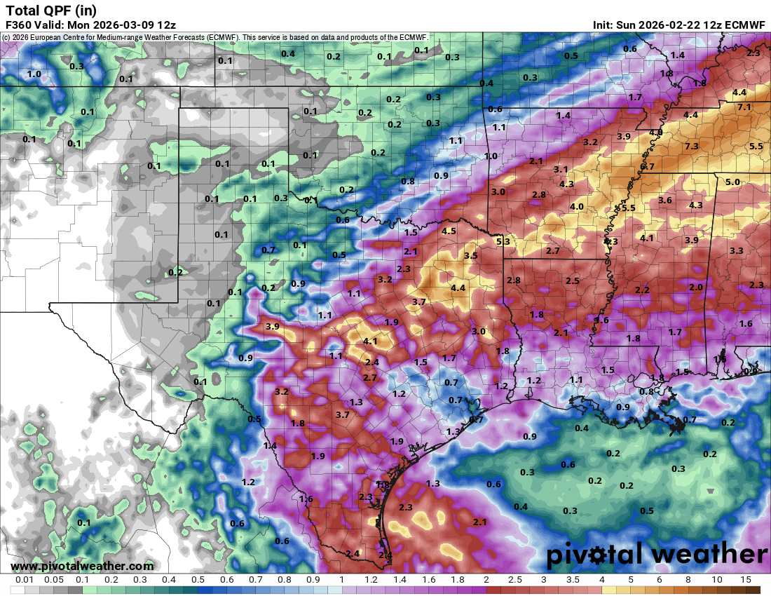 The Euro model is teasing us for a major rain event around the 8th of March...don't take it too seriously yet.