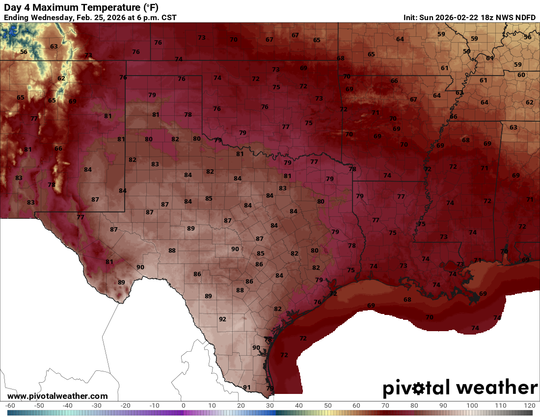 Dueling lows over the panhandle and north Texas will kick our winds out of the SW Tuesday-Thursday.