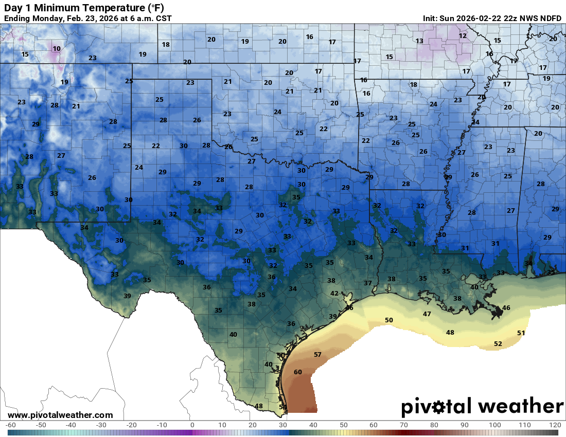 A cool and breezy day out there with wind gusts over 20mph this afternoon. With dew points in the teens and twenties, look for temperatures to drop quickly after sunset. While most locations will see lows in the 30’s and 40’s, if you live in a rural valley or the Hill Country, I would cover or bring in your frost sensitive plants tonight to be on the safe side, as there could be some sub-freezing zones overnight.