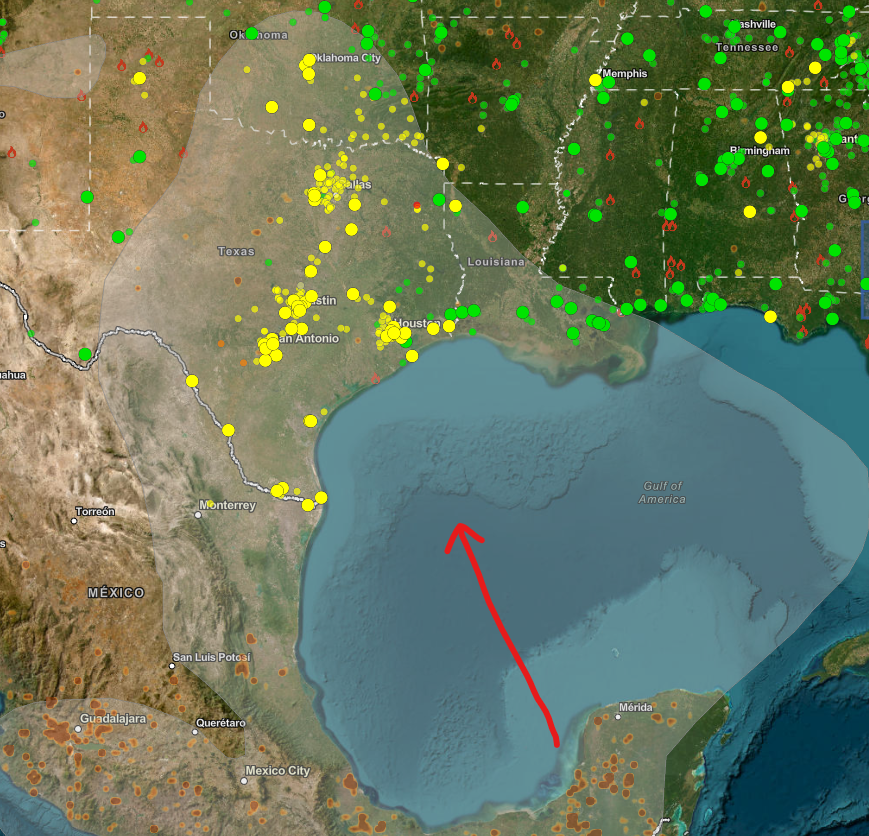 If you are wondering why it’s a bit hazy outside, the Mexican smoke is back along with diminished air quality. The latest model runs are below…take care not to get overheated for the next few days!