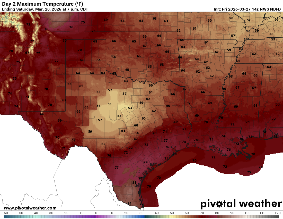 Forecast highs for Saturday.