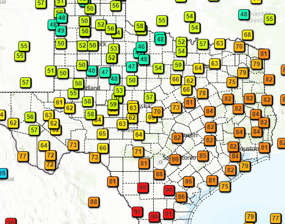 The front is knocking on the door of San Antonio right now and should be through the rest of the state by tonight. Winds will pick up out of the NE and gust to 30mph tonight and Saturday.