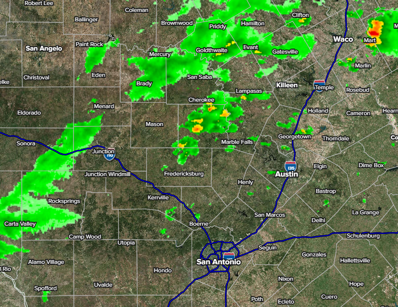 Yet another hot day out there with highs in the upper 80’s and low 90’s! A stationary front to our north will kick up a few scattered storms this afternoon, but as of post time, the best odds for any rain will stay mostly in north Texas. As mentioned yesterday, if you live along I-35 between San Antonio and Austin or the northern Hill Country, stay aware in case some scattered severe storms break the atmospheric cap later this afternoon. Hail and high wind will be the primary threat.