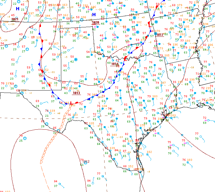 Location of our stationary front.