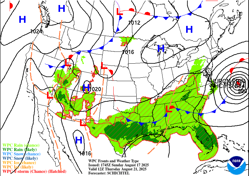 As far as the tropics go, Hurricane Erin lost a little strength over the past 24hrs and is now a cat 3 storm with sustained winds of 125mph, but is expected to gain some strength over the next couple of days as it moves NW. There is a tropical wave off the coast of Africa that has a 30% chance of becoming a depression over the next week. The GFS model continues to think it might become a hurricane in the Gulf in the next 10 days, but for now, none of the other models agree, so let’s not worry about it for now.