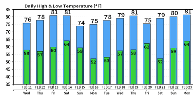 Continued above normal temperatures with highs in the 70’s and 80’s for at least another week to 10 days.