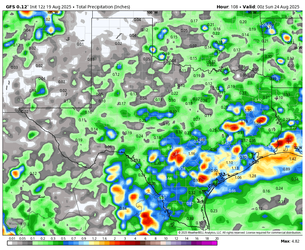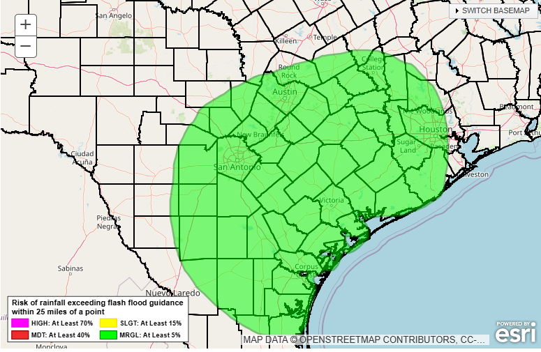 Today was supposed to be a fairly quiet day with only a slight chance for thunderstorms in the afternoon. Obviously the weather gods did not get the memo, and sent an inverted trough into Texas from the east. As I explained the past couple of days, with no high pressure above us, our weather could get very entertaining this week, especially on Thursday and Friday, when an early season front will move into south Texas, giving us an even better chance for rain. From the NWS: “Active weather with multiple chances for showers/storms expected this afternoon/evening through early next week - Potential for isolated flash flooding from slow moving storms this afternoon through at least Friday.”