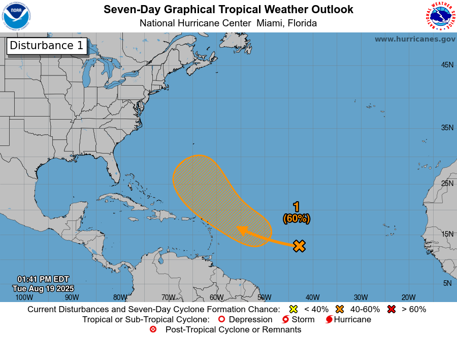 As far as the tropics go, wave that we discussed yesterday, has a 60% chance of forming into a storm, but the latest models are putting it on a very similar course as Erin, if it does so. There is another low just off the coast of Africa (99L), which has a 30% chance of becoming a storm in the next week, but it’s so far away from us, it’s barely worth mentioning.