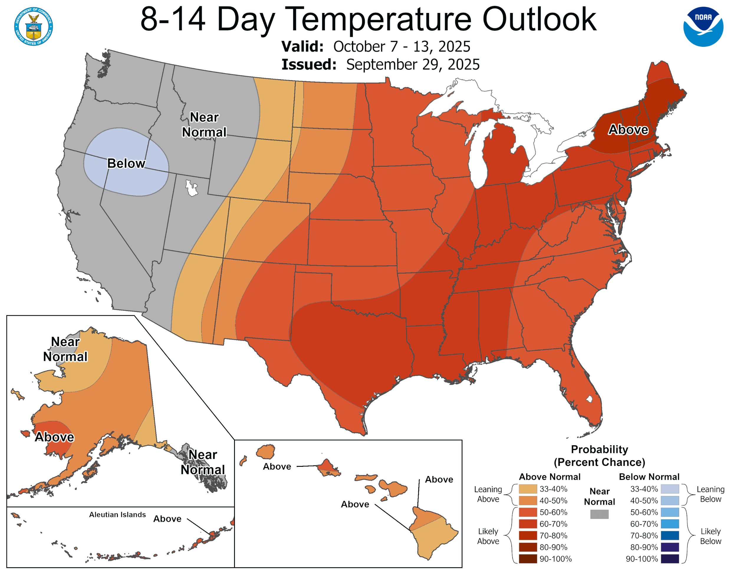 Yet another nice morning with lows in the 50’s and 60’s and highs so far today mainly in the upper 80’s and low 90’s with low humidity. We will warm up a bit this week, only to cool down slightly by the end of the week. Rainfall remains elusive, with the latest 7day forecast from the NWS, predicting almost zero chances for rain. We could see an uptick for rain chances along the coast next week and eventually inland later in the week. I’m seeing a possible pattern change later in the month and have posted some of the long-range model runs below. Unfortunately, as we all know, take long-range model runs with a grain of salt and a shot of Tequila!