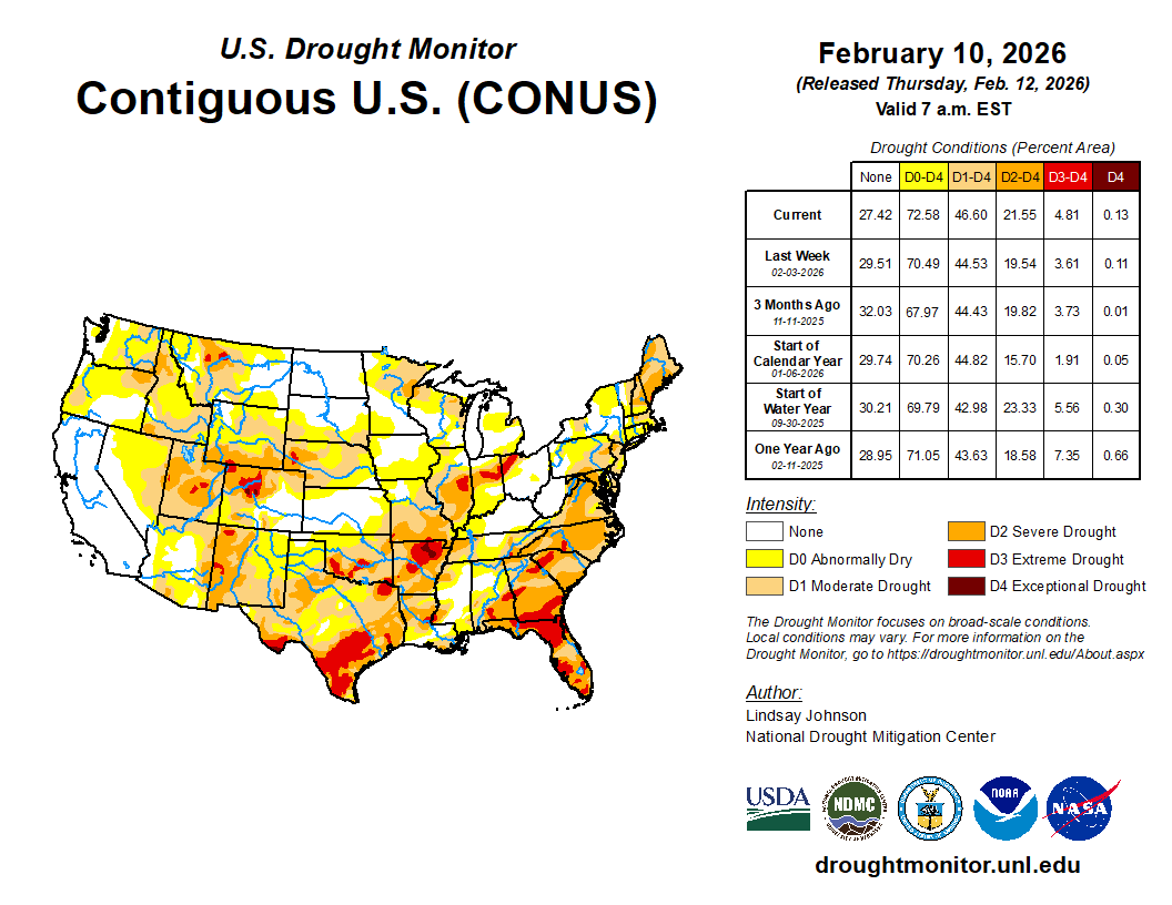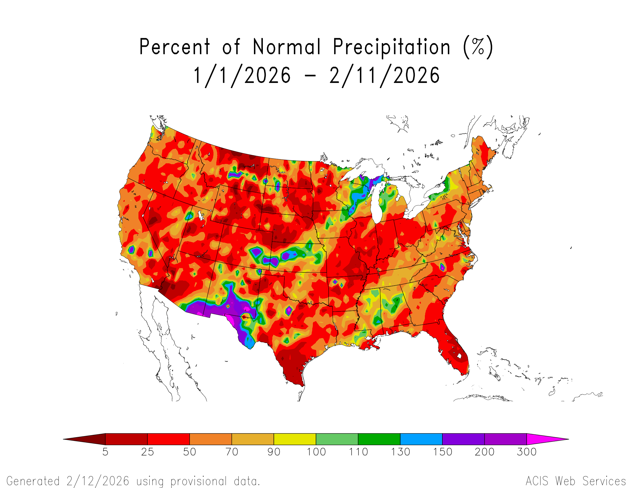 The latest drought update is out and an even greater percentage of our area is now in “Extreme Drought”. Much of the USA is currently in drought and the latest “percentage of normal rainfall” graphic shows that much of the USA has received less than 50% of their normal rainfall since January 1st. A pattern change will be helping the west, but not us in the short term.