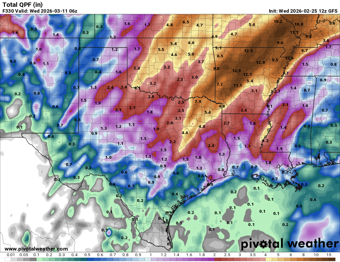 How much rain the latest GFS model thinks we will see between the 5th and the 11th.