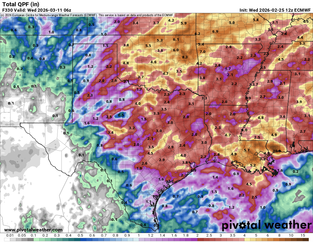 How much rain the latest Euro model thinks we will see between the 5th and the 11th.