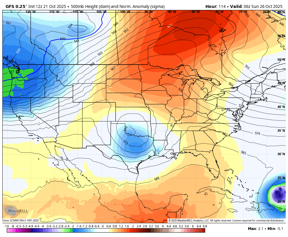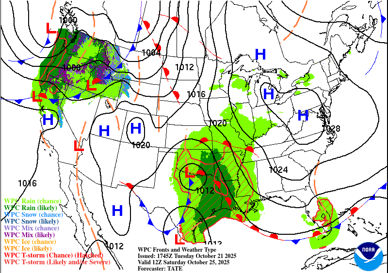 The latest GFS model shows where it thinks the low will be on Saturday.