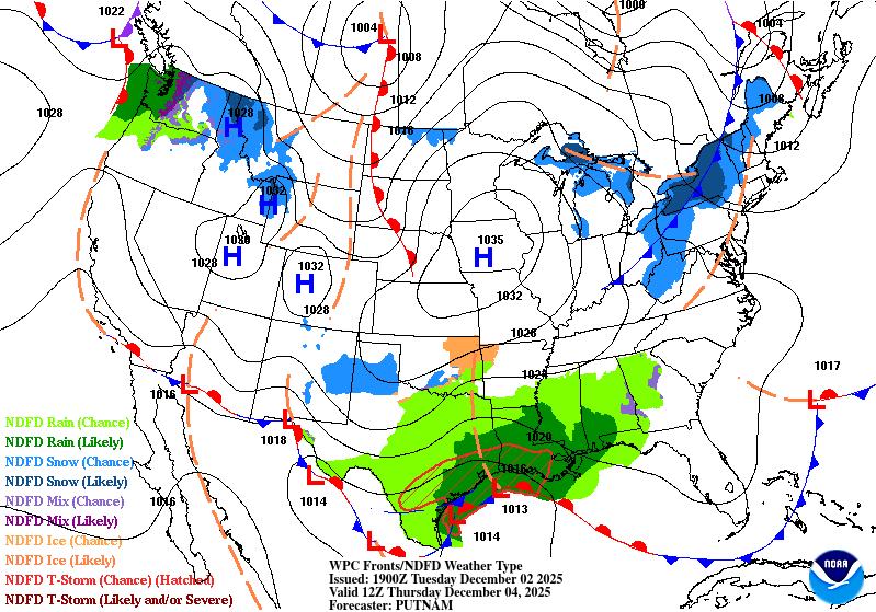 Another mostly sunny day tomorrow before clouds move in from the SW in the afternoon, ahead of our next cold front, which should arrive Wednesday night. Thanks to a surface low off the coast and Pacific moisture streaming in from the SW, look for a windy, cold and wet day on Thursday, with highs likely to only reach the 40’s and low 50’s. Rain chances continue through Friday morning, but clouds will keep us cool with highs only in the 50’s.