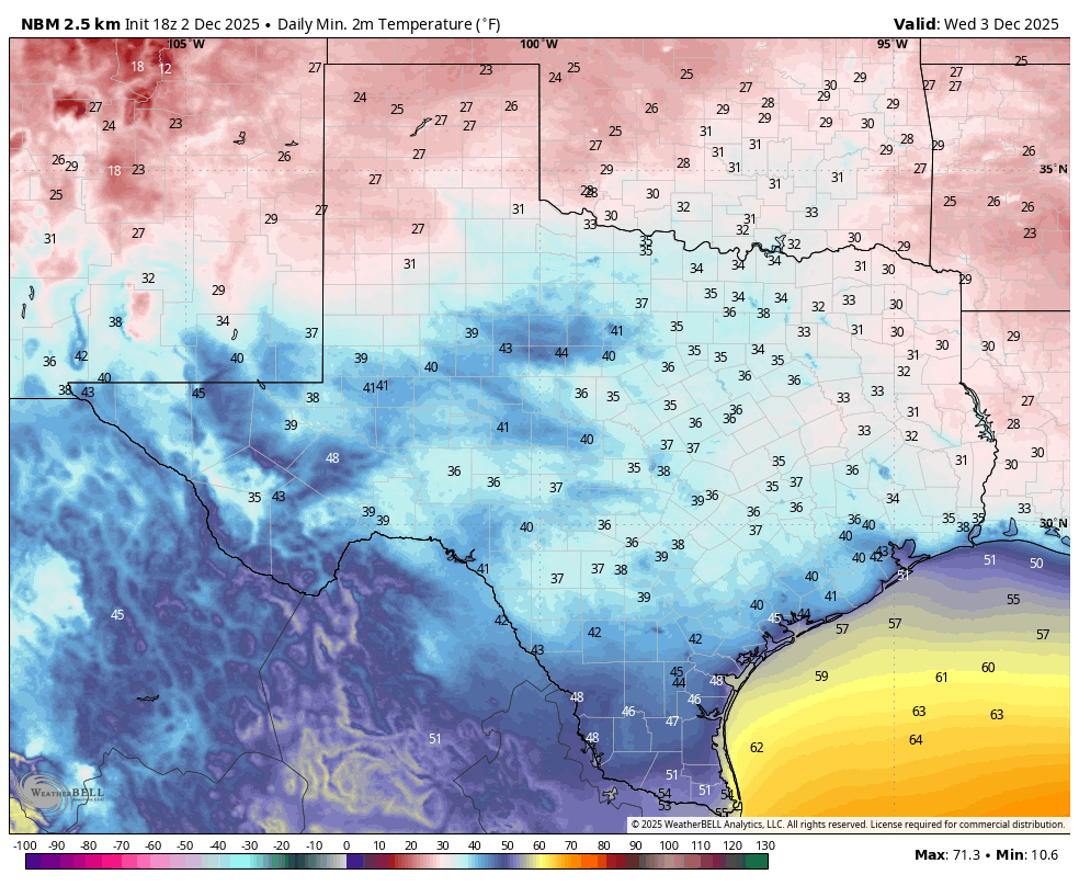 Was a chilly start to the day with many of you reporting your first freeze of the season. My weather station in NW Bexar County (Helotes) recorded a low of 32 degrees. Hopefully we put a dent in the mosquito population last night! Under mostly sunny skies, temperatures have rebounded into the 50’s and 60’s this afternoon. We’ll see another cold night, but with winds shifting back into the SE, temperatures should only drop into the mid 30’s and 40’s.