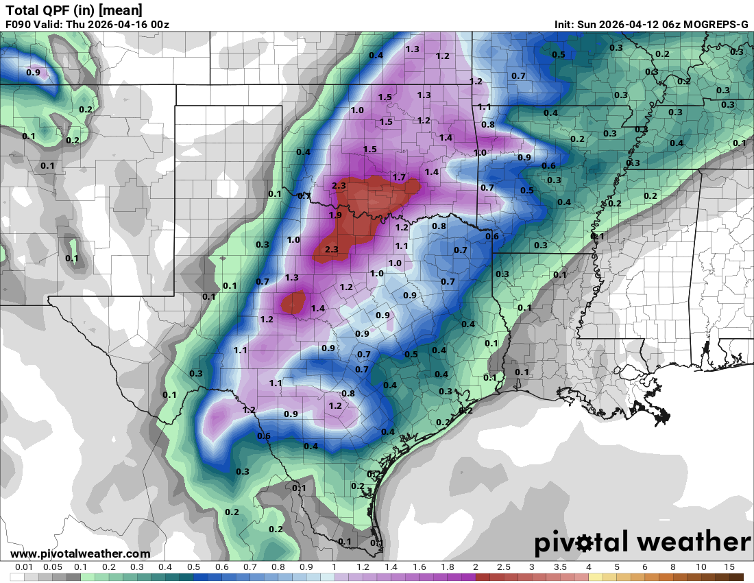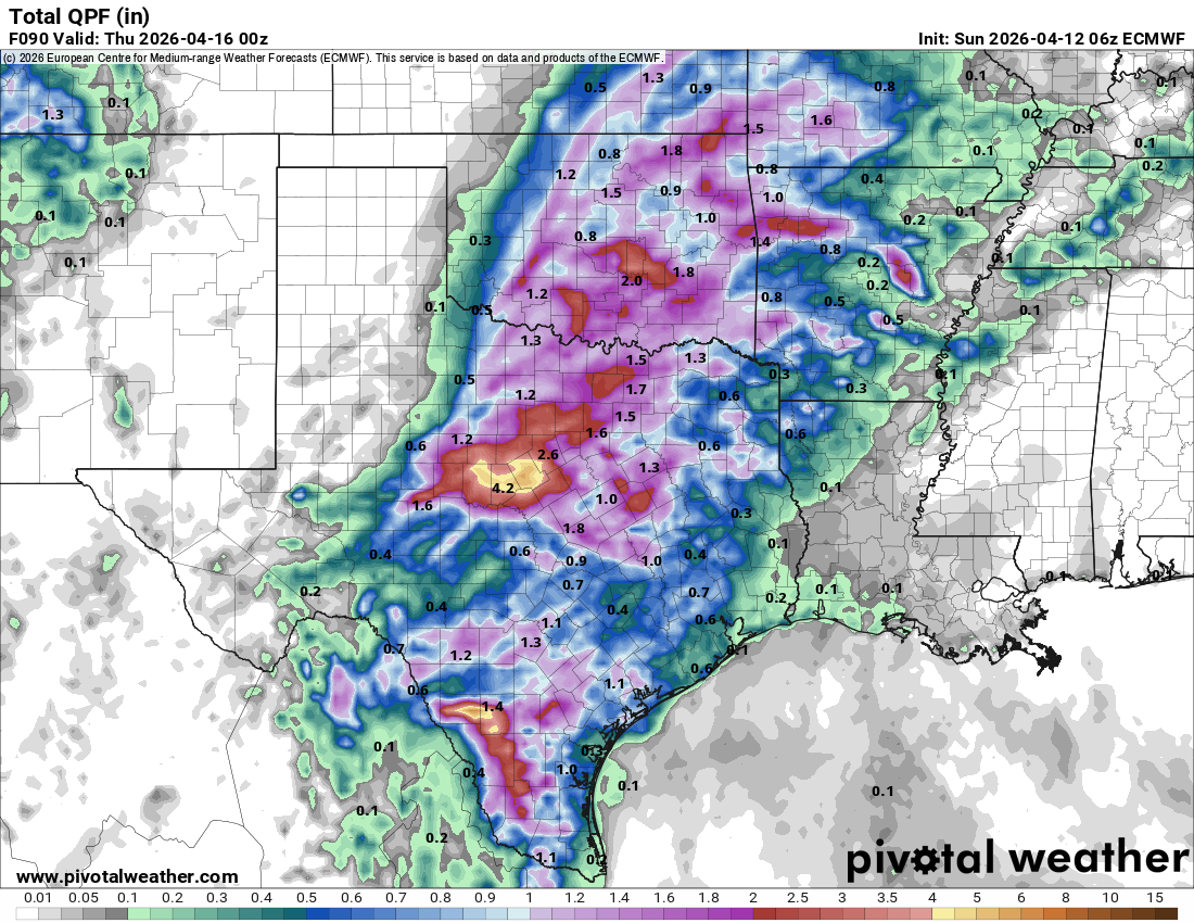 How much rain the latest Euro model thinks will fall between today and Wednesday. Click on images to see them larger.