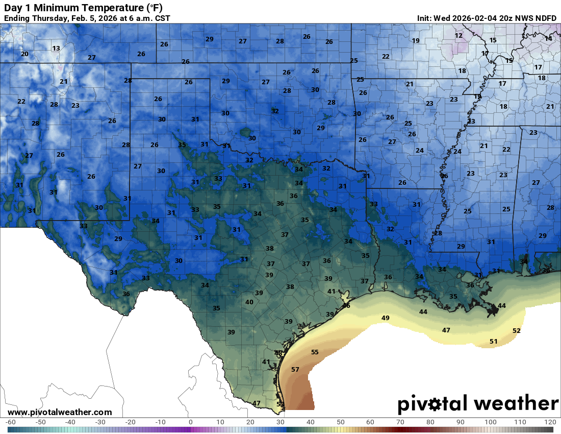 Forecast lows for tomorrow morning.