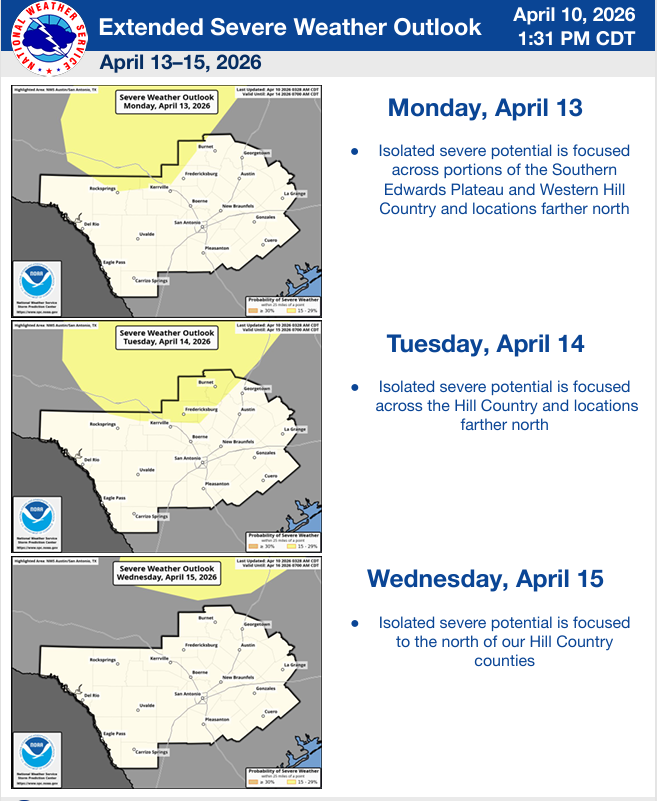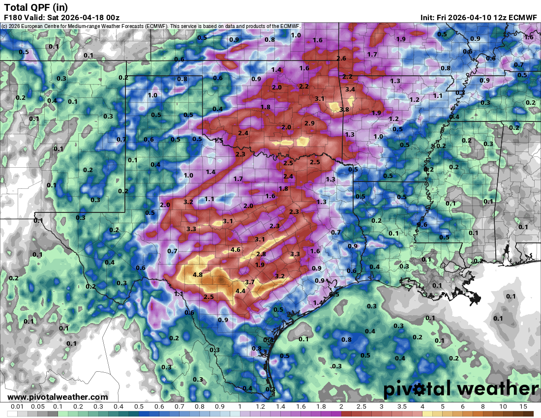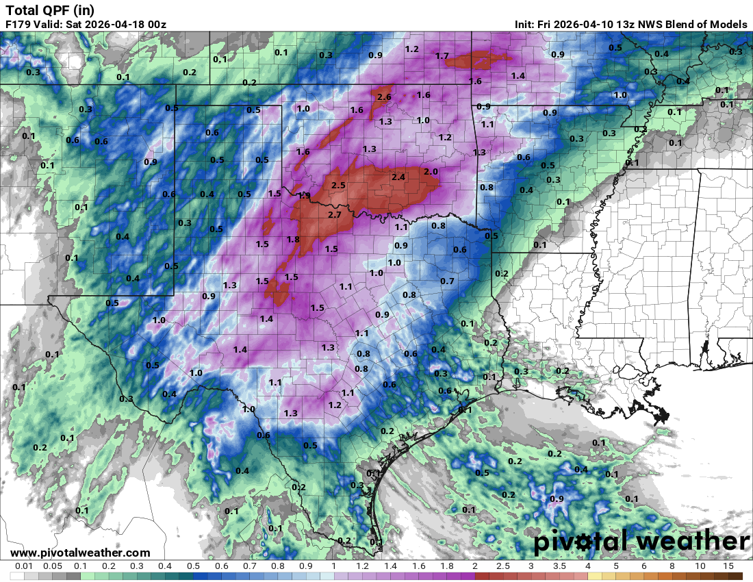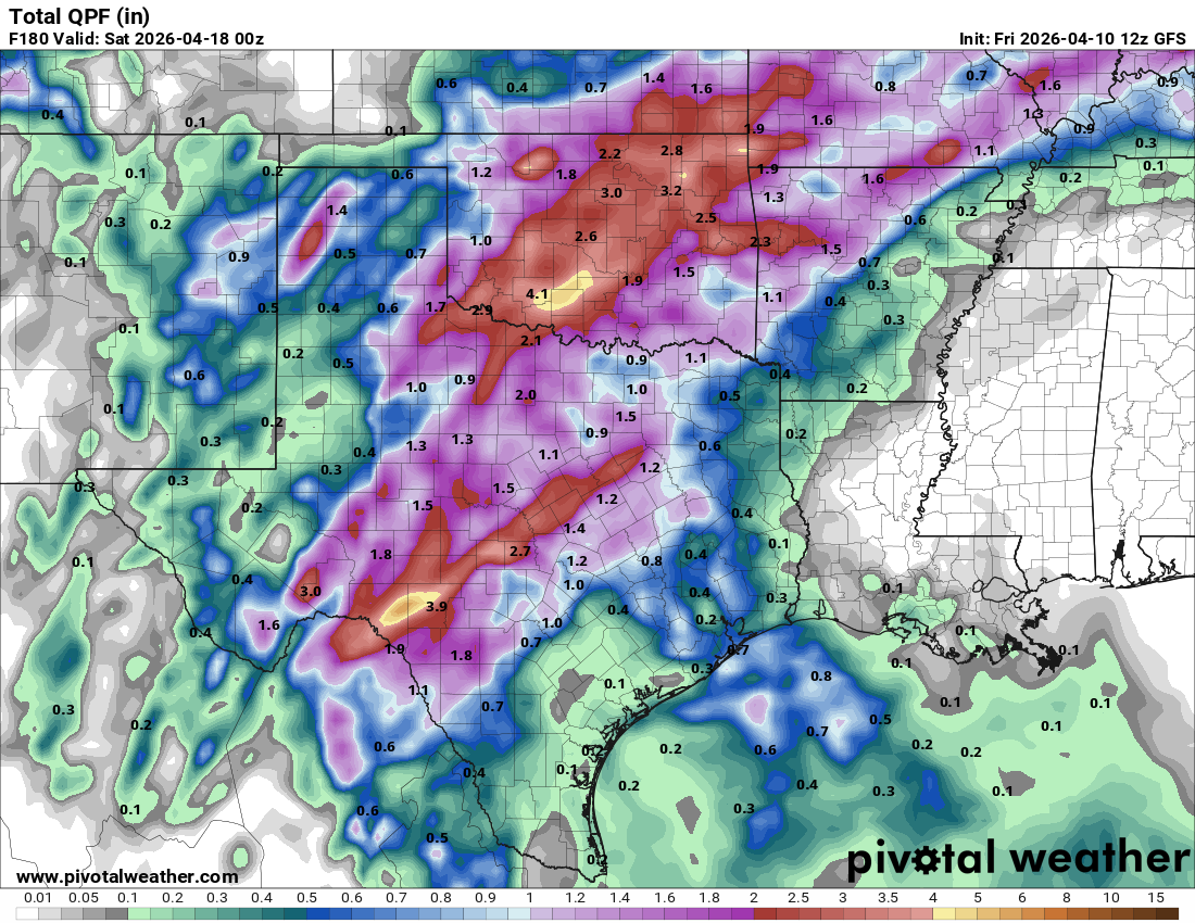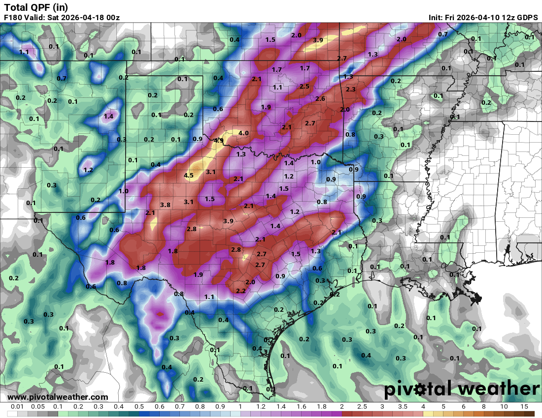 4-10-26. 4pm This update is brought to you by Davy Ranch Supply. We have an extensive supply of fencing materials including barbed and netting wire, t-posts, cedar and treated posts, brace and twist pipe, staples, clips, and welded panels. We also stock 7 different types of medium and heavy-duty gates ranging in length from 4 ft-20 ft. We sell galvanized portable panels and 24 ft free-standing pipe panels, too. We have concrete and poly water troughs in various sizes along with a selection bunk and hay feeders. www.davyranchsupply.com The NWS sums it up well! “An active weather pattern is expected over the next week as nearly continuous southwesterly mid-level flow sets up over the southern and western USA. Ample moisture ahead of an upper-level low over the West Coast will result in a series of shortwave disturbances moving through the flow this weekend.”