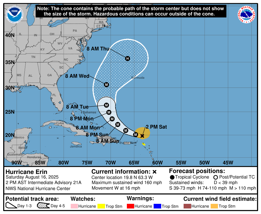 As far as the tropics go, Erin is now a rare CAT 5 hurricane, with sustained winds of 160mph! Fortunately, it will not have direct impact on the USA mainland, but could bring mudslides and heavy rain to the Leeward Islands, Virgin Islands and Puerto Rico over the next couple of days. For now, that’s the extent of storms in the Atlantic. The GFS model has been scaring people over the past day, forecasting a major hurricane in the Gulf in about 10 days. As most of us know by now, the GFS has a really bad hurricane forecast record and is currently the only model forecasting a storm during that time frame. While it could happen, please don’t fall for any weather pages hyping this model run.
