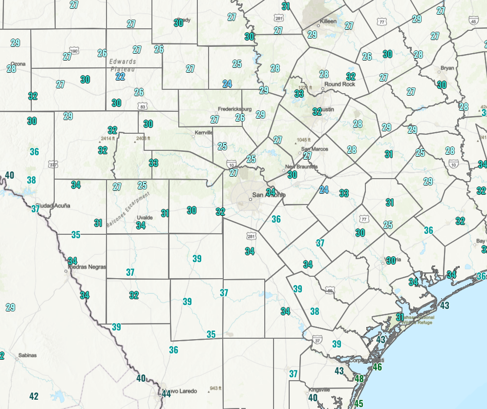 A RECORD LOW TEMPERATURE OF 29 DEGREES WAS SET AT AUSTIN BERGSTROM TODAY. THIS BREAKS THE OLD RECORD OF 30 DEGREES SET IN 2005. This sums up our morning with many locations in the Hill Country dropping into the upper 20’s and low 30’s. I hope none of you were taken by surprise and hopefully your plants didn’t get nuked overnight! Based on everything that I am seeing in the models, there isn’t another surprise cold outbreak heading our way through the end of March.