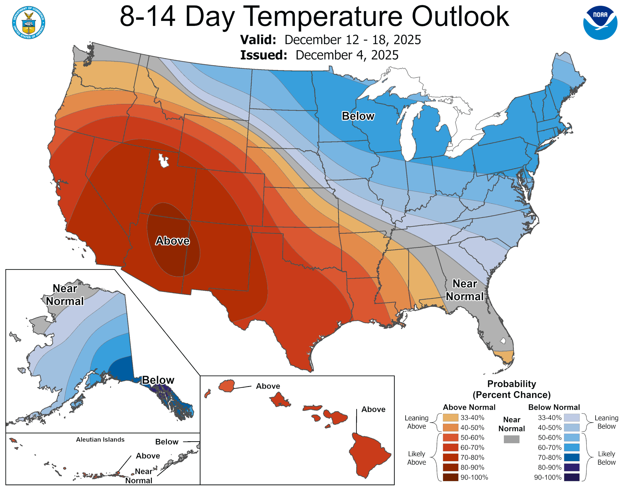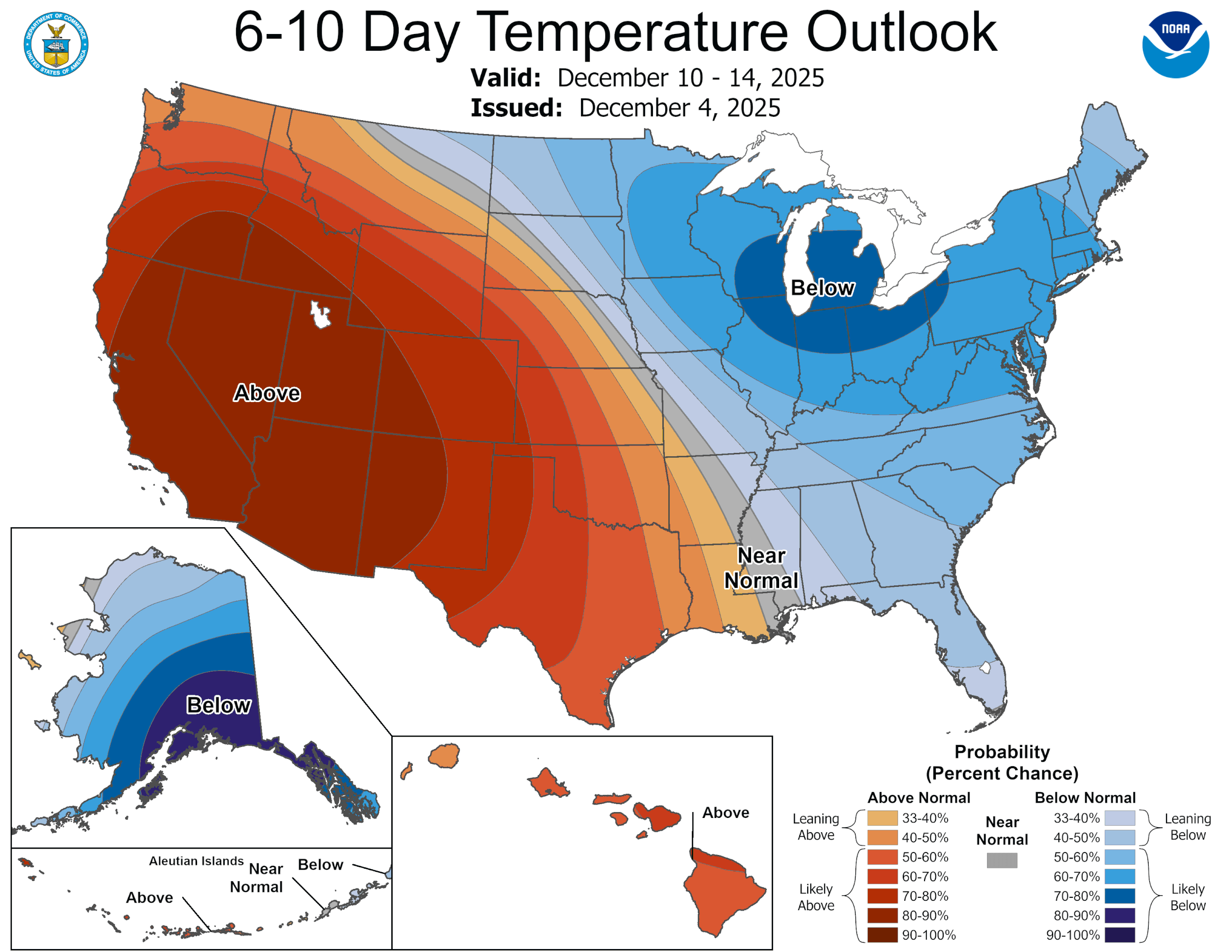 It’s certainly not the way I like my weather, but with most of us in extreme drought right now, I guess any kind of moisture is better than nothing! Cold and wet weather will stick around for another 24hrs, then by Saturday we’re back to shorts with temperatures under sunny skies moving back into the 70’s. We cool down a little on Sunday as a dry front moves through, lowering our highs into the 60’s on Monday, but by the middle of next week we are back into the 70’s again with no more rain events for at least a week. The 6-10 and 8-14 day outlooks from the CPC put us in better than 50-50 odds for above normal temps and below normal rain (except for far south Texas and the LRGV).