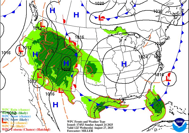 Don’t break out the jackets yet, but we could see two fronts slipping into Texas this week, enhancing our rain odds on Tuesday-Wednesday, then again this weekend. Unfortunately, the cooler air will likely stay in north Texas, but the latest model runs are forecasting highs in the upper 80’s and low 90’s for most of south-central and south Texas on Labor Day, which is certainly better than 100’s! Lows could drop into the 60's on Monday. Storms will be scattered, so overall coverage is not looking great as of post time. Rainfall totals look to be from 1/10 to 1/2 an inch for most spots.