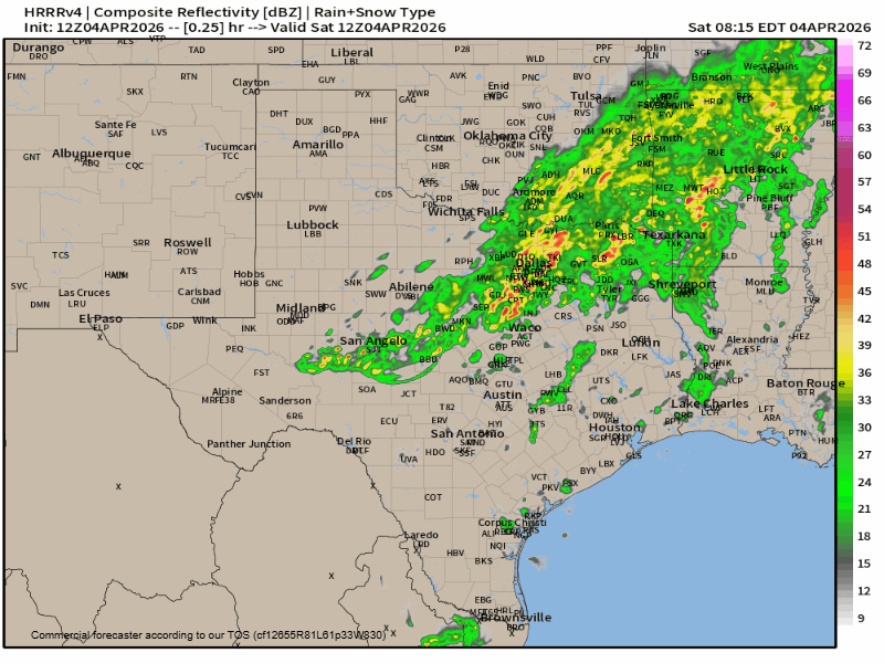 How the latest HRRR model thinks our radar will look over the next 48hrs.