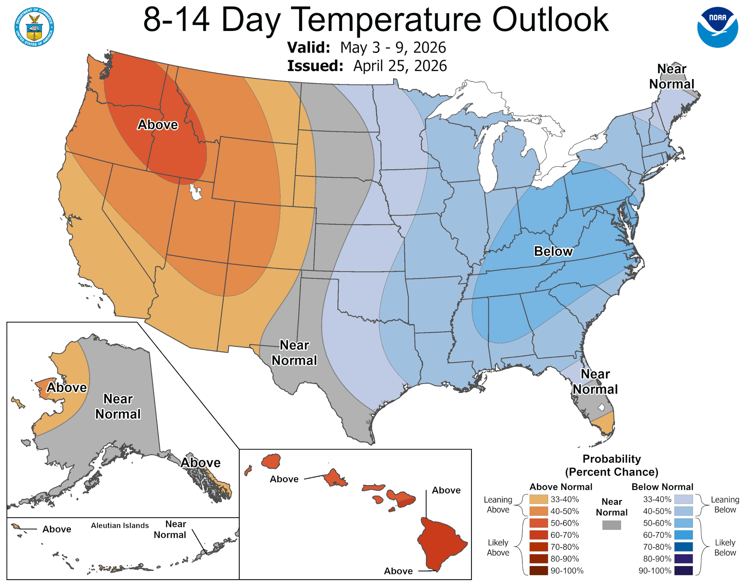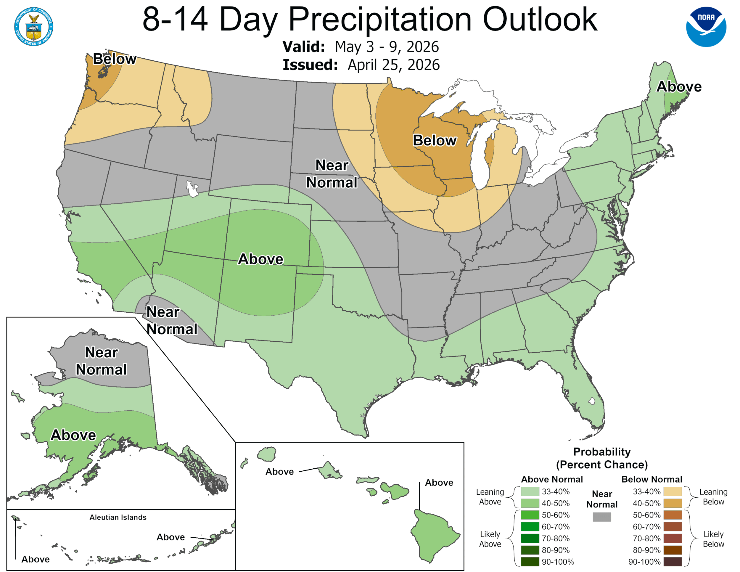 The latest CPC outlooks look great, with forecast temperatures trending below normal and precipitation above normal!