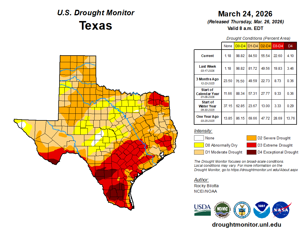 This Drought update is brought to you by Dietz Mclean Optical Company. www.dmoptical.com As a family-owned business, our independence, in house lab, great customer service and eyewear warranties, allows us to tailor your eyeglasses, lenses, and fittings: we want you to only expect the best after working with us. With six conveniently located optical shops in San Antonio, Boerne, Marble Falls and Temple, it’s easy to love what you see.