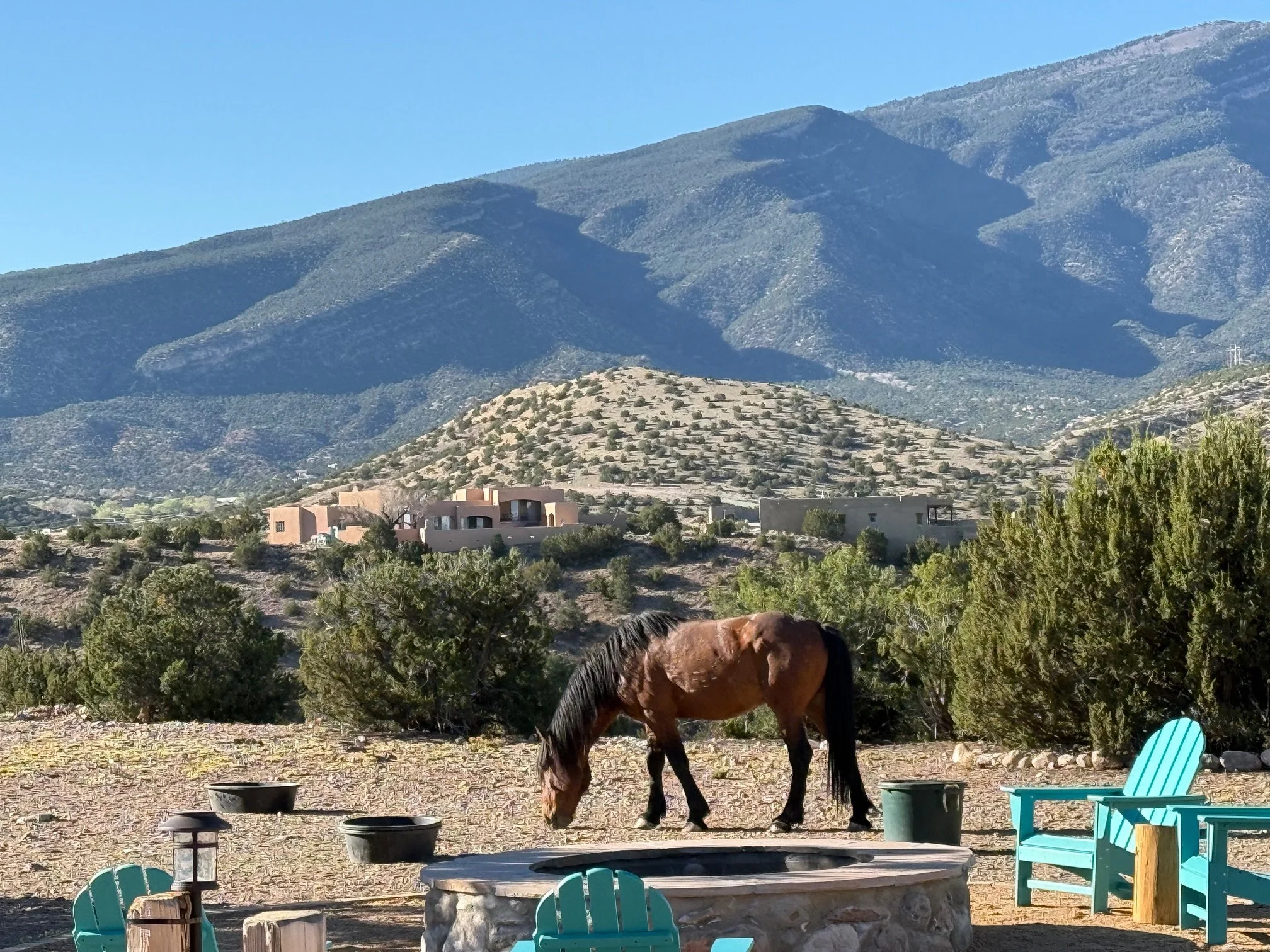 We are staying with some friends in Placitas, NM. Wild horses roam the area and often hang out at people's backyards.