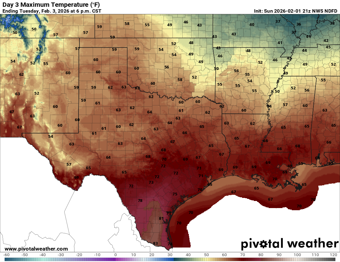Forecast highs for Tuesday.