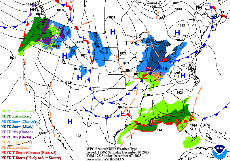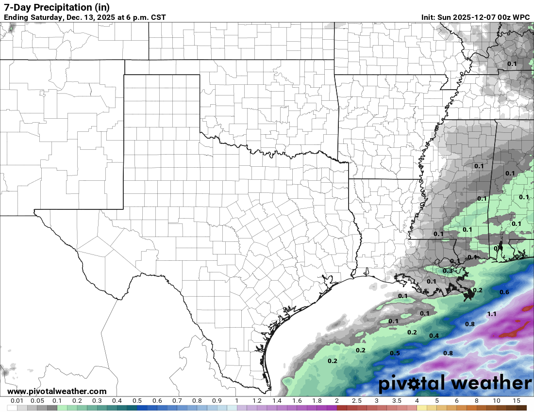 A warm December day out there with lots of upper 70’s and even some low 80’s popping up around our area, with the only exception along the coast where it is still mostly cloudy. A seasonal front arrives tomorrow kicking up our winds in the afternoon from the NW and cooling us off to 40’s and 60’s for a couple of days until we warm back into the 70’s and low 80’s again by Wednesday. A fairly strong front moves through on Friday and we may actually see below normal temperatures next weekend with lows in the 30’s and highs only in the 40’s and 50’s. You’ll notice that I have not mentioned rain in this forecast…that’s because rain odds will be zero all week!
