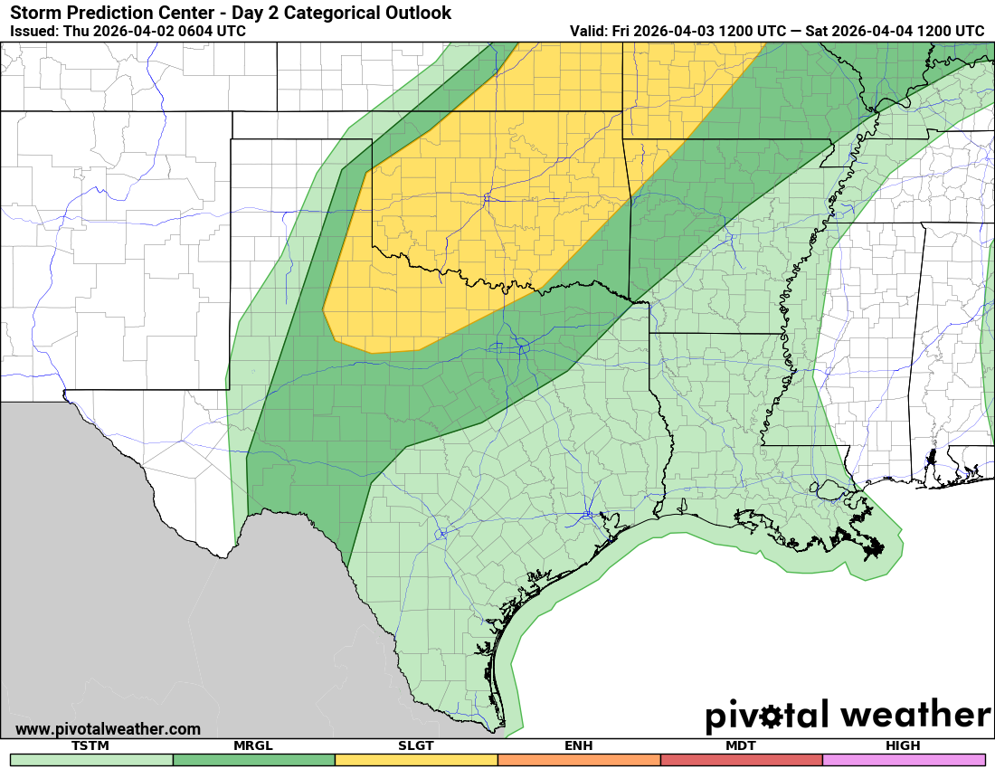 Best odds for severe storms for Friday-Saturday.
