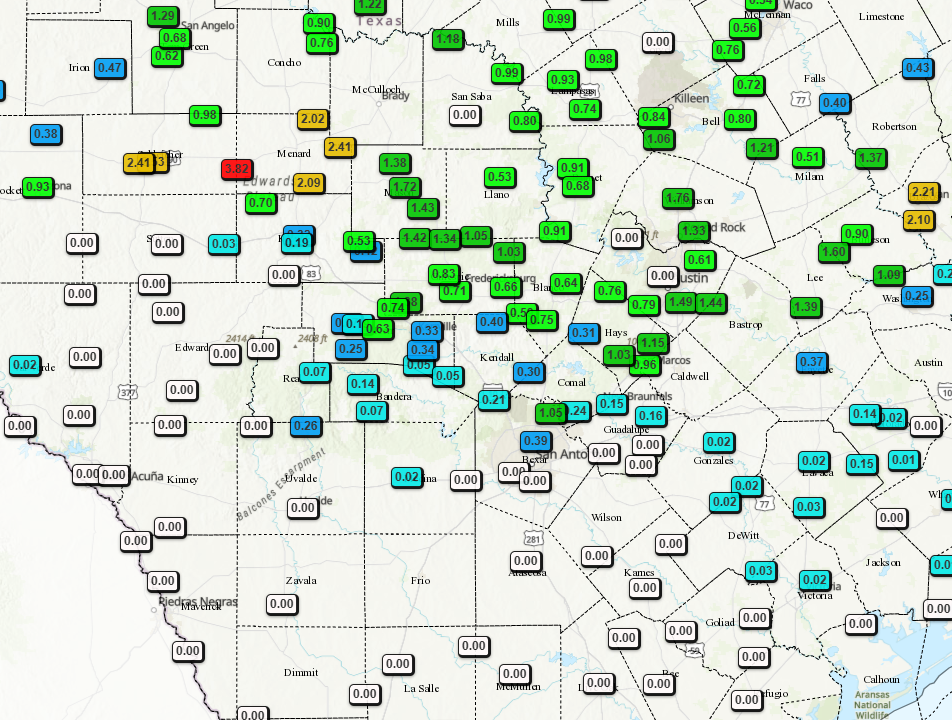 4-2-26. 2pm. This update is brought to you by Dietz Mclean Optical Company. www.dmoptical.com As a family-owned business, our independence, in house lab, great customer service and eyewear warranties, allows us to tailor your eyeglasses, lenses, and fittings: we want you to only expect the best after working with us. With six conveniently located optical shops in San Antonio, Boerne, Marble Falls and Temple, it’s easy to love what you see.Fortunately, the showers and thunderstorms ended up moving a little further south than the models had predicted, with much of the Hill Country recording a half to an inch of rain overnight. My weather station in NW San Antonio reported 0.25 inches of rainfall. As expected, those of you to the south of HWY 90 and I-10 east saw little to any rain from round one.