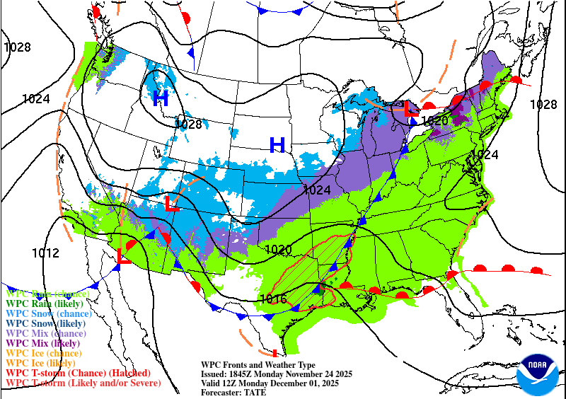 We heat up into the low 80’s tomorrow ahead of the next front, due to arrive during the night, early Wednesday. You’ll certainly notice this one with winds gusting to 25mph out of the north on Wednesday and temperatures only reaching the 60’s. The winds die down Wednesday night and by Thanksgiving morning we will see a few freezes in the Hill Country and 40’s for the rest of us. Temperatures rebound into the 60’s and a few 70’s in the afternoon as our winds shift back into the SE. Milder weather for Friday through the weekend, with a chance for rain and then….