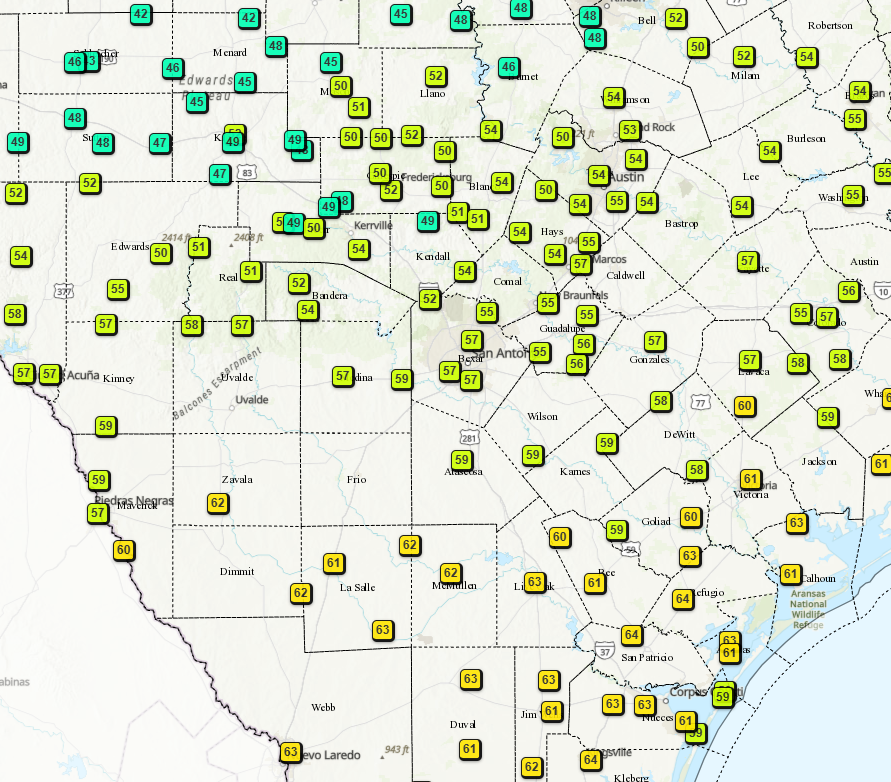 A hard freeze for the Hill Country and our northern counties...freezing temps possible as far south as Laredo and Corpus.